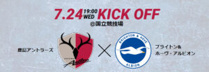 7月24日(水)に東京の国立競技場にて、日本代表の三笘薫選手が所属しているブライトンと鹿島アントラーズの試合がございます。